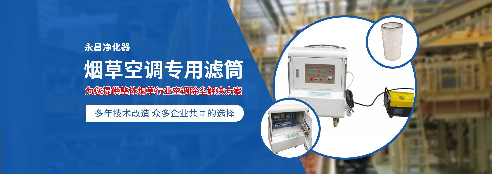 新鄉(xiāng)市永昌凈化器有限公司是生產(chǎn)煙草行業(yè)空調(diào)除塵專用濾筒的企業(yè)。注冊(cè)資金1000萬(wàn)元。已通過(guò)ISO9001國(guó)際質(zhì)量管理體系認(rèn)證。對(duì)產(chǎn)品有嚴(yán)格的管理制度和售后服務(wù)。我公司以誠(chéng)信、負(fù)責(zé)、守信譽(yù)、重質(zhì)量的精神所生產(chǎn)的產(chǎn)品,近幾年來(lái)在煙草行業(yè)受到廣泛應(yīng)用,并受到用戶的一致好評(píng)。  從一九九四年以來(lái)為煙廠的空調(diào)設(shè)備服務(wù)。十幾年來(lái),我們不斷走出去請(qǐng)進(jìn)來(lái)學(xué)習(xí)新技術(shù)。定期到用戶那里咨詢情況:互相交流,認(rèn)真聽(tīng)取寶貴意見(jiàn),不斷提高產(chǎn)品質(zhì)量。從經(jīng)濟(jì)和安全,方便的角度出發(fā),根據(jù)煙廠濕度大的生產(chǎn)環(huán)境和濾筒收集到的含酸堿、氧化劑的粉塵。在空調(diào)箱工作狀態(tài)下我們頂著巨大的風(fēng)壓危險(xiǎn)在箱內(nèi)停留了幾分鐘,認(rèn)真查看濾筒工作情況,發(fā)現(xiàn)濾筒有并死狀態(tài),造成濾筒不過(guò)濾、不過(guò)風(fēng)、壓差高的現(xiàn)象。經(jīng)幾十次試驗(yàn)分析,在標(biāo)本兼治的原則下,有針對(duì)性的解決了這一問(wèn)題。  我公司針對(duì)煙廠制絲、卷接包、混絲間、儲(chǔ)絲房、冷卻床、梗膨化等不同的生產(chǎn)環(huán)境,